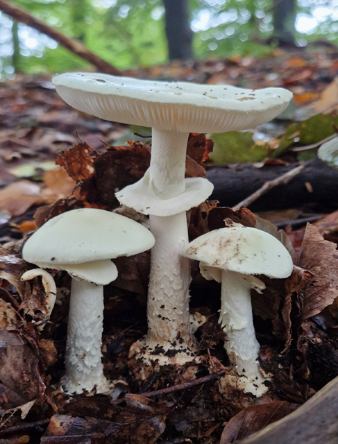 Hier sieht man schön die Merkmale der Gattung → weiße Lamellen, ein Ring (Teilhülle) und eine Knolle.